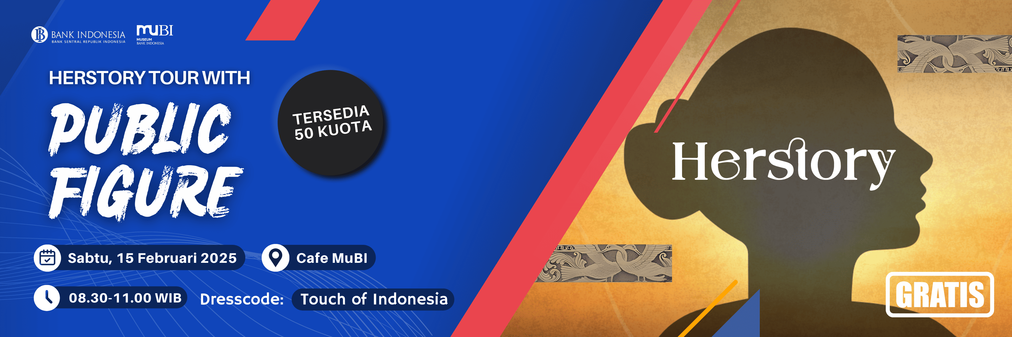 Pameran herstory menyajikan kisah perjuangan perempuan dari gelap menuju terang yang dikemas melalui zonasi dengan alur perspektif Dia, beralih ke Aku, dan berakhir pada Kita (Her, Me, Us). Istilah herstory sendiri merupakan sindirin untuk kata history, sebuah kritik terhadap penulisan sejarah yang sering terjebak dalam perspektif patriarki. Pameran herstory menampilkan uang rupiah bergambar perempuan yang diterbitkan tahun 1952 hingga tahun 2022 yang berjumlah 42 koleksi (termasuk uang rupiah bergambar 5 pahlawan perempuan) dan 6 buah uang token perkebunan era kolonial Belanda. Pembagian zonasi dimulai dari beranda; zona ruang gelap; zona melawan gelap; zona terbit terang terpatri dalam uang; zona balkon; dan area koda. Di setiap zonasi, dilengkapi dengan media interaktif dan instalasi tata pamer yang estetik. Pameran herstory mendapatkan antusiasme tinggi dari masyarakat yang diikuti membludaknya kunjungan ke MuBI (tercatat lebih dari 48.000 pengunjung per 50 hari berlangsungnya pameran). Pemberitaan pameran herstory juga viral atau fyp di media sosial dengan berbagai review positif dari content creator besar, dan mendapat liputan ekslusif dari sejumlah media massa. Pameran herstory berlangsung 11 Desember 2024 hingga 16 Februari 2025. Pameran dimeriahkan dengan beberapa side event di antaranya donor darah, worksop crochet, Kuliah Informal Kebanksentralan (KLIK), MuBI 100.000, educative performance, herstory tour with public figure, hingga giveaway medsos. Selain itu, pameran ini melibatkan kolaborator di antaranya Prodi Desain Interior Universitas Pelita Harapan untuk desain gambar tata pamer, koleksi pahlawan Tjut Njak Dhien dan Tjut Meutia dari Museum Aceh, koleksi pahlawan Dewi Sartika dari Yayasan Ahli Waris Pahlawan Nasional Raden Dewi Sartika (AWIKA), koleksi pahlawan Martha Christina Tiahahu dari Anjungan Provinsi Maluku TMII, serta koleksi pahlawan Kartini dari Museum Kartini Jepara.